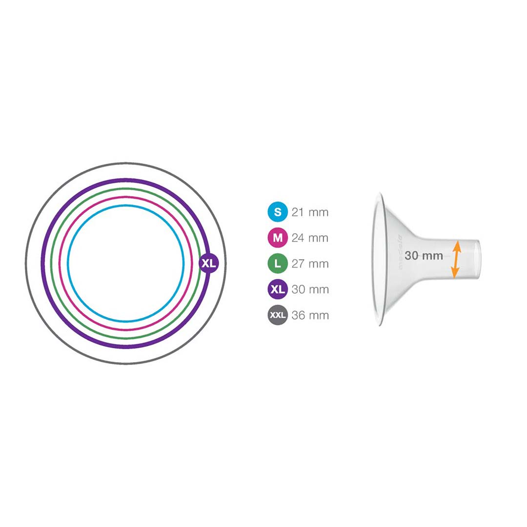Medela shield range allows mothers to choose the Medela shields that are the right size for them, to ensure maximum comfort and efficiency when pumpingDesigned for individual comfort, personalised breast-shield size for optimally comfortable pumping, maximum output and optimised breast-emptyingThe right Medela shield size is important to avoid compression of any milk ducts during pumpingPrevent nipple trauma and pump in comfortThis will help a mother to maintain her milk production and support her lactationUsing a too small or too large breastshield may lead to impaired milk removal because milk ducts could get blocked or milk ejection-inhibitedFriction around the nipple and/or areola can cause discomfort and trauma which may cause a mother to only pump infrequently Medela nipple shields (nipple guard) can be used if you have sore or cracked nipples Again, her milk production is jeopardised Tissue breakdown due to nipple trauma carries the risk of infection and mastitis Other available accessories for your breastfeeding journey are breastmilk collection shells, breast shells, nipple shells and collection shells Also available are Medela bras and breast pump bra