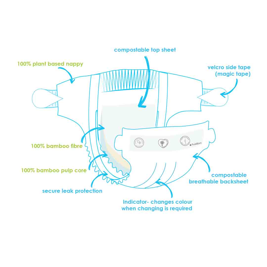 PureBorn Nappy | Size 2 | 3-6 Kg | Assorted Prints