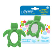 Scoop, nibble, soothe! Dr. Brown’s™ Silicone Starter Spoon safely feeds and eases sore teething mouths while encouraging the transition to solid foods. Just scoop a little food into the flat spoon made for little mouths, give it to baby to help hold, and let them suck and chew on the spoon. The motion of bringing an object to their mouth with food on it can help them smoothly graduate to eating with utensils. The Silicone Starter Spoon’s ring shape makes it easy for little hands to hold, while the textured arms massage sore gums. Plus, combining texture with pureed or soft foods can help baby start to associate texture with food, which may help them transition to more complex foods with more tongue stability. The soft, shallow spoon bowl easily scoops up perfect portions of food, making it a great starter spoon. The 100% silicone material is gentle on teething gums yet stands up to chomps and chews. For extra sore mouths, cool before use! The Silicone Starter Spoon is dishwasher (top rack), microwave, sterilizer, and freezer safe. BPA free. 4m+.